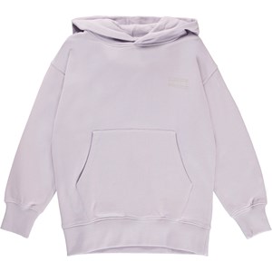 Moz is een lichtpaarse unisex hoodie met op de voorkant zakken en een zwarte logo op de linkerkant. Moz heeft een ribboord aan de mouwen en onderkant.