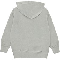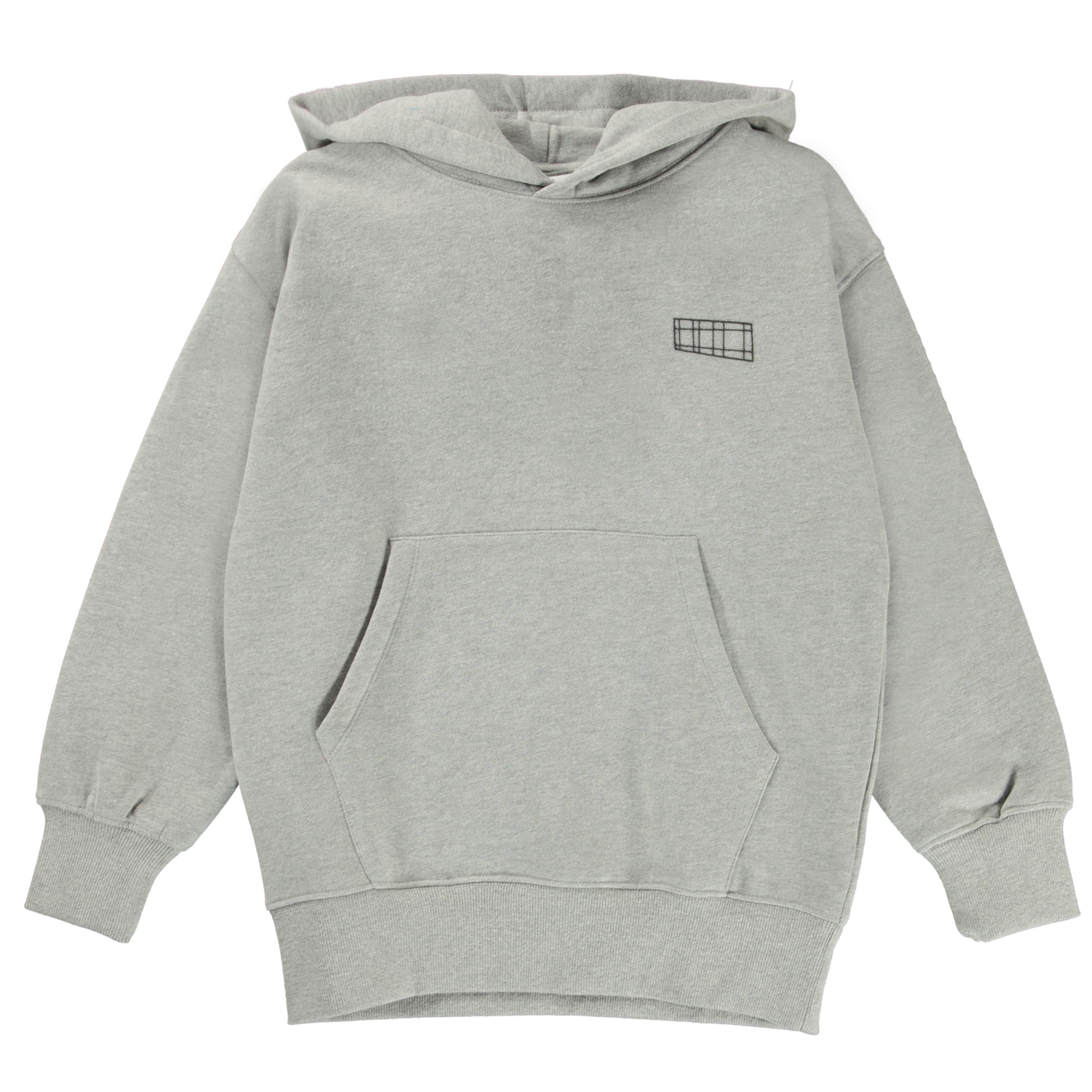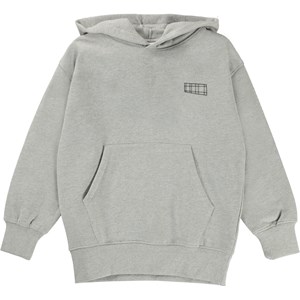 Moz is een grijze unisex hoodie met op de voorkant zakken en een zwarte logo op de linkerkant. Moz heeft een ribboord aan de mouwen en onderkant.