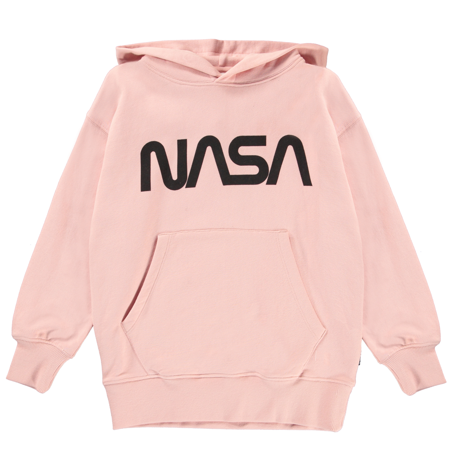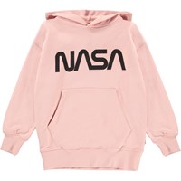 Moz is een lichtroze unisex hoodie met een ‘Nasa’ print. Het heeft zakken op de voorkant. Moz heeft een ribboord aan de mouwen en onderkant.