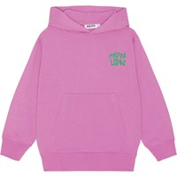 Paarse hoodie van zacht biologisch katoen. Het heeft een buidelzak en ribboord rond de mouwen en onderkant. De hoodie heeft een ruimvallende pasvorm die stoer en comfortabel is. Op de voorkant zijn de woorden 'More Love' geborduurd.