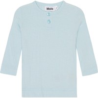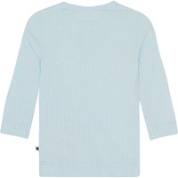 Voor kleine kinderen een lichtblauw shirt met lange mouwen in geribde viscose jersey. Het zit nauwsluitend en heeft knopen bij de hals, waardoor het comfortabel en gemakkelijk aan te trekken is. Voor een complete jersey set kun je het shirt dragen met een babybroekje die dezelfde zachte stof en kleur heeft.