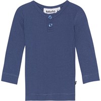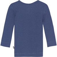 Blauw topje voor de kleine kinderen in rib met knoopjes aan de voorkant. Dit babytop is gemaakt van een viscose jersey en heeft lange mouwen. Draag de top met de Sting broek die dezelfde kleur heeft.