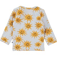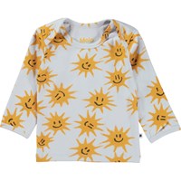 Elan is een lichtblauw babyshirt met een print van vrolijke zonnetjes.