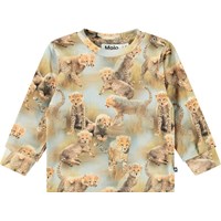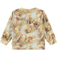 Longlseeve van biologisch katoenen jersey voor de kleintjes. De longlseeve geeft goede bewegingsvrijheiden heeft ribboord rond de mouwen en drukknopen op de schouder, waardoor het makkelijk aan te trekken is. De longlseeve heeft een all over print van cheetawelpen.