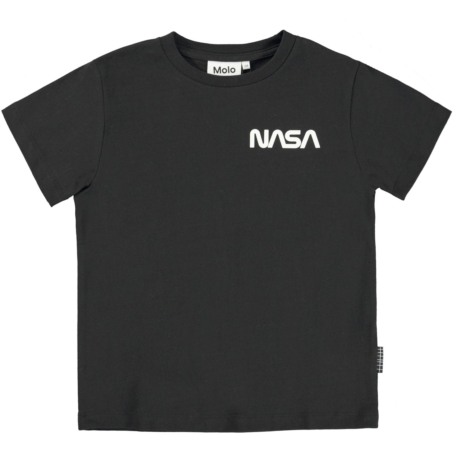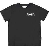 Rame is een zwarte unisex t-shirt met op de voorkant een print van Nasa. Het t-shirt heeft een ronde hals.