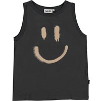 Rave is een donkergrijs hemdje met op de voorkant een print van smileys.