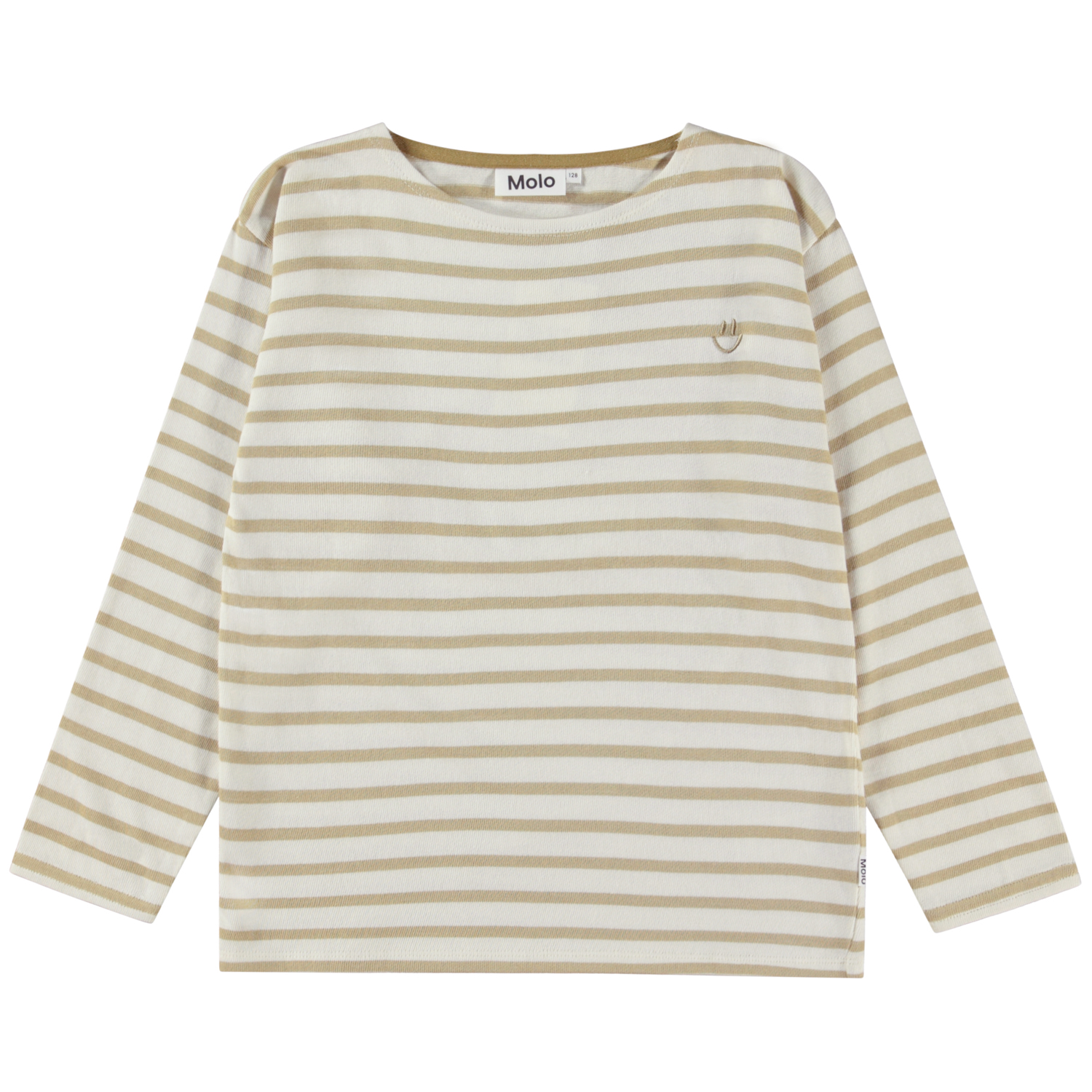 Rilder is een shirt in een goud-wit Bretonse streep. Het shirt heeft lange mouwen.