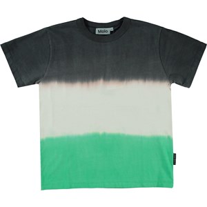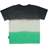 Riley is een ruimvallende unisex t-shirt met een aansluitende ronde hals in een gestreepte tie-dye print in het groen, wit en grijs. Het t-shirt heeft korte mouwen. Al Molo’s tie-dye print zijn met de hand gemaakt en hebben daarom een unieke uitstraling.