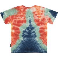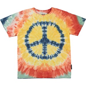 Riley is een ruimvallende unisex t-shirt met een aansluitende ronde hals in een kleurrijke tie-dye print met het vredesteken. Het t-shirt heeft korte mouwen. Al Molo’s tie-dye print zijn met de hand gemaakt en hebben daarom een unieke uitstraling.