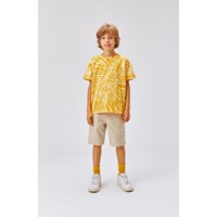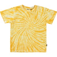 Riley is een ruimvallende unisex t-shirt met een aansluitende ronde hals en een gele tie-dye print. Het t-shirt heeft korte mouwen. Al Molo’s tie-dye print zijn met de hand gemaakt en hebben daarom een unieke uitstraling.