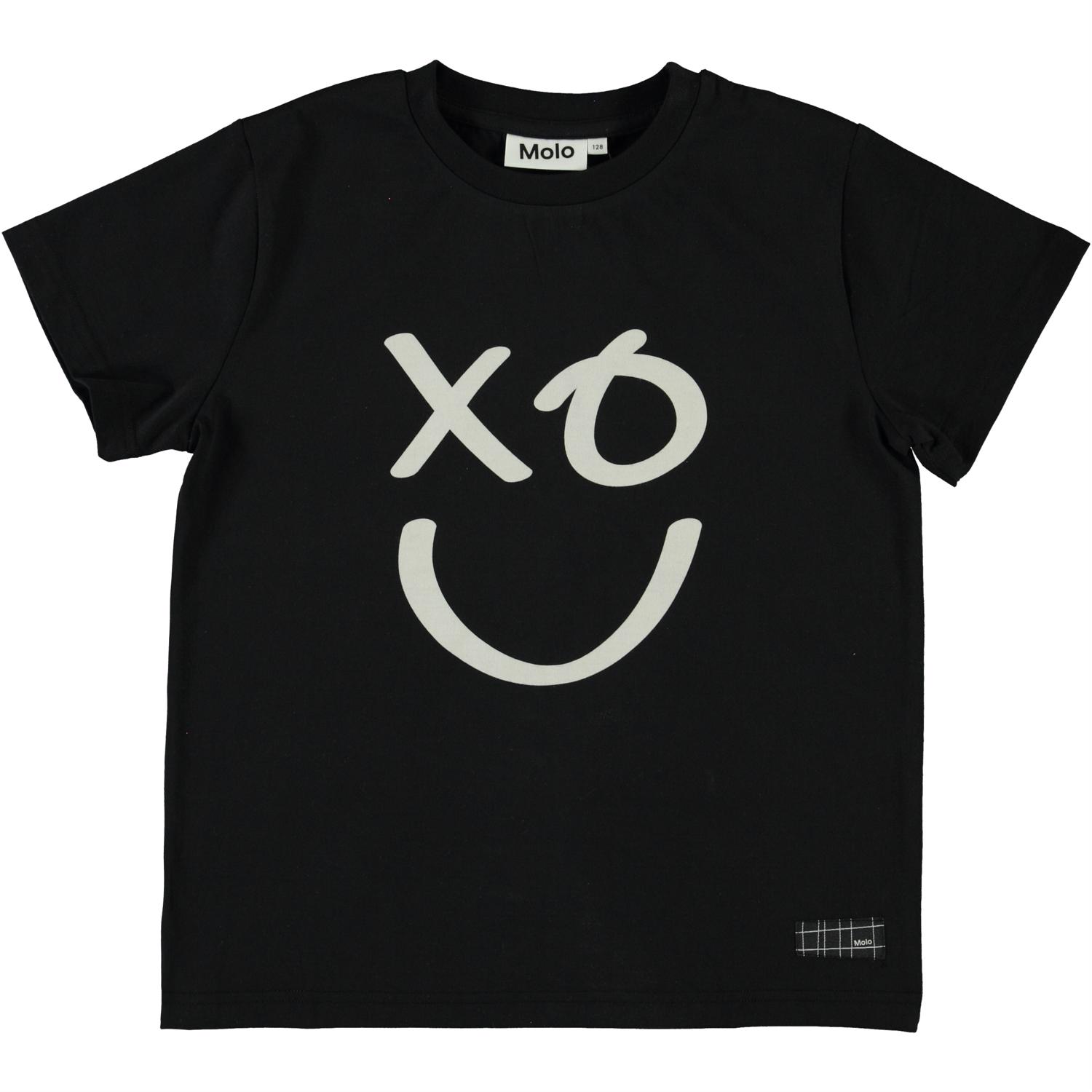 Roxo is een zwart t-shirt met een smiley op de voorkant.