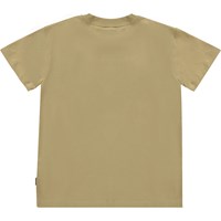 Bruin t-shirt met op de voorkant een print van een kleine, zwarte tekstballon met een vrolijk gezicht. Dit t-shirt is van 100% biologisch katoen en heeft een ronde hals met ribboord. Het heeft een normale pasvorm.