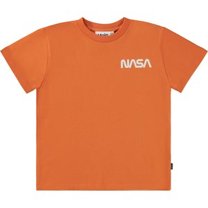 Oranje t-shirt met een witte NASA print op de voorkant. Op de zijkant staat in het wit 'Space for All' gedrukt. Dit t-shirt is van 100% biologisch katoen en heeft een ronde hals met ribboord. Het heeft een normale pasvorm.