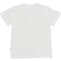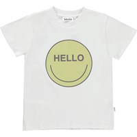Roxo is een wit unisex t-shirt met een aansluitende ronde hals en op de voorkant een Hello smiley print. Het t-shirt heeft korte mouwen.