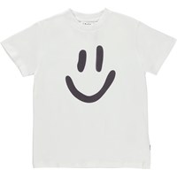 Roxo is een wit t-shirt met een aansluitende ronde hals en een print van een smiley. Het t-shirt heeft korte mouwen.