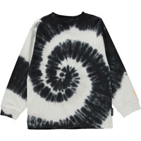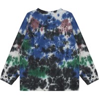 Longsleeve in tie-dye in de kleuren blauw, groen en zwart. Deze longsleeve is van 100% katoen, heeft een ronde hals met ribboord en ribboord aan de mouwen. Het heeft een ruimvallende pasvorm. De tie-dye print van Molo is uniek en handgemaakt, wat betekent dat de print van stijl tot stijl kan verschillen.