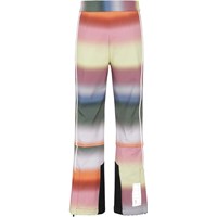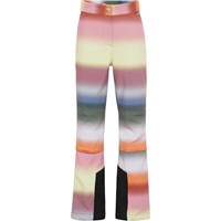 Harlie is een functionele en waterdichte skibroek in een pastelkleurige regenboogprint. Het heeft een smalle pasvorm met uitlopende pijpen. Harlie heeft een drukknoop en ritssluiting in de taille, steekzakken, verstelbare openingen vande pijpen met sneeuwflappen en extra verstevigingen bij de binnenbenen. De broek is gemaakt van wind- waterdicht en ademend materiaal. Dit product heeft een waterbestendige, PFC-vrije oppervlaktebehandeling (Bevat bijvoorbeeld geen PFOS, PFOA, etc). Waterkolomdruk: 8.000 mm. Ademend: 5.000 g/m2/24u.