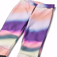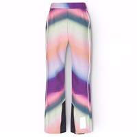 Waterafstotende softshell broek van gerecycled polyester met een kleurrijke overlopende graffiti print. De broek heeft een binnenvoering van fleece, een rits en knoopsluiting in de taille, die ook verstelbaar is met een interne elastiek. De broek heeft een verstelbare beenopening met sneeuwvanger en extra versteviging tussen de benen. De broek heeft een slanke pasvorm met een lichte flair in de benen, evenals reflectoren langs de zijkanten en een grote reflector aan de achterkant voor betere zichtbaarheid in het verkeer.