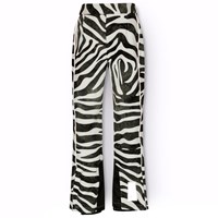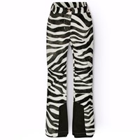 Zebra gestreepte waterafstotende softshell-broek van gerecycled polyester. De broek heeft een binnenvoering van fleece, een rits en knoopsluiting in de taille, die ook verstelbaar is met een interne elastiek. De broek heeft een verstelbare beenopening met sneeuwvanger en extra versteviging tussen de benen. De broek heeft een slanke pasvorm met een lichte flair in de benen, evenals reflectoren langs de zijkanten en een grote reflector aan de achterkant voor betere zichtbaarheid in het verkeer.