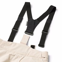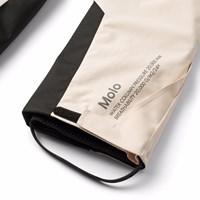 Gebroken witte wind- en waterdichte skibroek gemaakt van gerecycled polyester. De skibroek heeft een drukknoop- en ritssluiting, externe verstelbare klittenbandsluitingen, riemlussen voor Molos bretels (extra accessoire), verstelbare beenopeningen met sneeuwvangers en extra versterking tussen de benen. De skibroek heeft waterdichte zakken en een reflecterende tekst op de achterkant om de zichtbaarheid in het verkeer te vergroten. Daarnaast is de skibroek versterkt met fleece op blootgestelde gebieden en gevoerd met 3M™ Thinsulate™.
