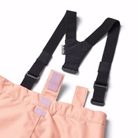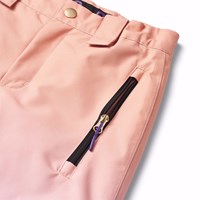 Wind- en waterdichte skibroek van gerecycled polyester in verschillende tinten oranje, roze en paars. De skibroek heeft een knoop- en ritssluiting, een verstelbare elastiek aan de binnenkant, riemlussen voor Molos bretels (extra accessoire), en een verstelbare beenopening met sneeuwvangers en extra versteviging tussen de benen. De broek heeft zakken en een grote reflector aan de achterkant om de zichtbaarheid in het verkeer te vergroten. Daarnaast is de broek gevoerd met fleece op de blootgestelde gebieden en gevoerd met 3M™ Thinsulate™ voor meer bewegingsvrijheid voor je kind.