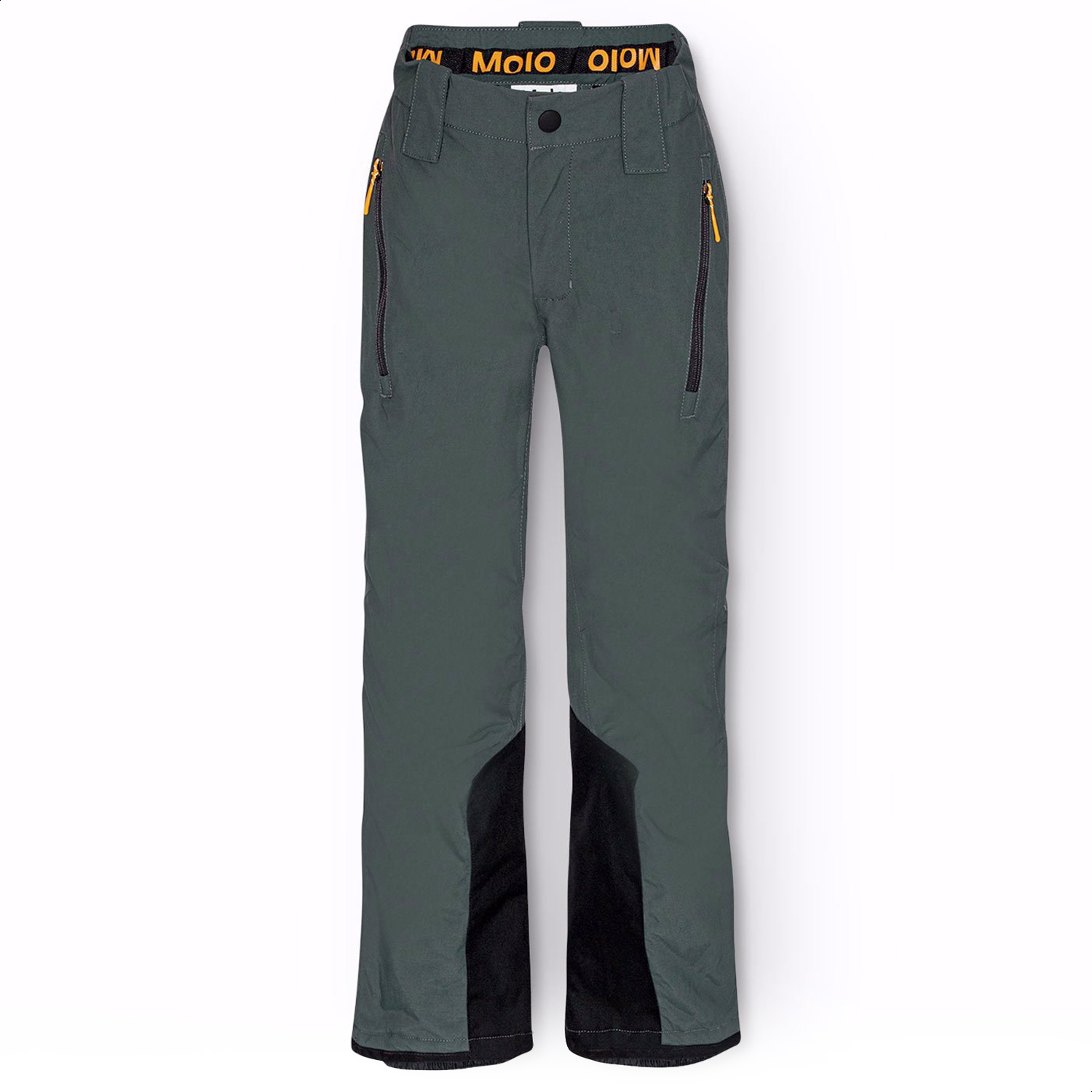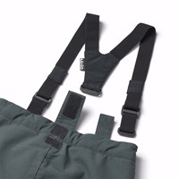 Donkergrijze wind- en waterdichte skibroek van gerecycled nylon. De skibroek heeft een knoop- en ritssluiting, een verstelbare elastiek aan de binnenkant, riemlussen voor Molos bretels (extra accessoire), en een verstelbare beenopening met sneeuwvangers en extra versteviging tussen de benen. De broek heeft zakken en een grote reflector aan de achterkant om de zichtbaarheid in het verkeer te vergroten. Daarnaast is de broek gevoerd met fleece op de blootgestelde gebieden en gevoerd met 3M™ Thinsulate™ voor meer bewegingsvrijheid voor je kind.