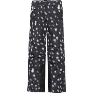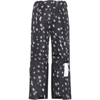 Jump Pro is een waterdichte broek die extreem functioneel is bij het skiën omdat het zeer duurzaam is. Deze skibroek is zwart met witte vlekken die op de huis van ree lijken. De buitenstof is voor 51% gerecycled nylon uit afval en de voering en de tussenvoering zijn 100% gerecycled. Het heeft een drukknoop en ritssluiting in de taille, steekzakken en verstelbare pijpen met sneeuwflappen en extra versteviging aan de binnenkant van de pijpen. Het is gemaakt van een wind- en waterdichte en ademende stof. Dit product heeft een waterbestendige, PFC-vrije oppervlaktebehandeling (bevat bv. geen PFOS, PFOA, enz.). Waterkolomdruk: 15.000 mm. ademend: 15.000 g / m2 / 24 uur. Het heeft klittenband voor bretels die kunnen worden gekocht.