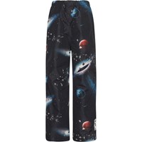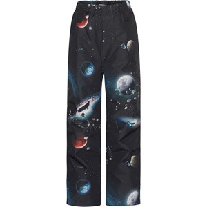 Regenbroek die perfect is voor dagelijks gebruik voor actieve kinderen. Het heeft vele eigenschappen, zoals een hoge waterkolomdruk en een hoog ademend vermogen, waardoor een kind warm en droog blijft in de koude maanden. Deze regenbroek is een onderdeel van Molo's 'Outdoor Proof ' collectie, dat is buitenkleding voor gematigde winters zonder temperaturen die onder het vriespunt met dubbele cijfers oplopen. De broek voldoet aan Molo's hoge normen voor buitenkleding met dezelfde functionele details en kwaliteitsmaterialen waar Molo bekend om staat. De regenbroek is natuurlijk ook gemaakt van duurzame gerecyclede materialen. Deze Paxton is donkerblauw met een planeten print.