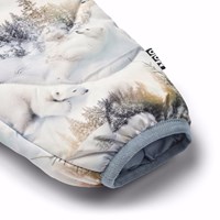 Waterafstotende thermobroek voor baby's en peuters met lichtblauwe afwerking. De broek heeft een ruime pasvorm, een elastische taille met een verstelbare elastische band en een nauwsluitende beenopening. De broek heeft een all-over print van een besneeuwd landschap met speelse ijsberen. Broek en voering zijn gemaakt van gerecycled polyester. Het waterafstotende oppervlak is vrij van PFOS en PFOA. Combineer met een bijpassende jas en krijg een warme en zachte thermoset.