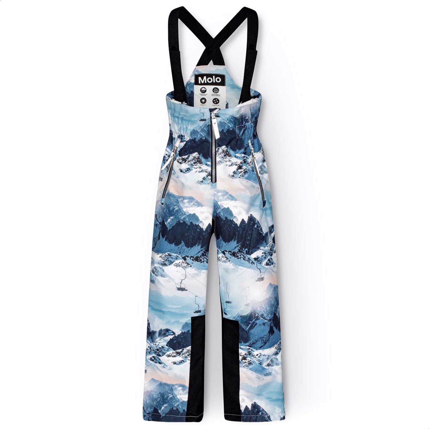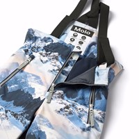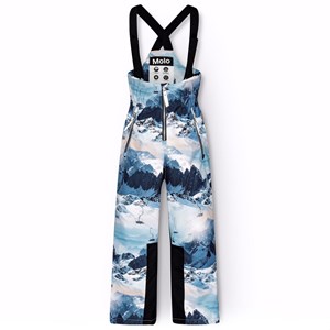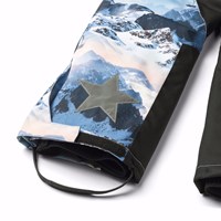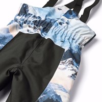 Wind- en waterdichte skibroek van gerecycled polyester met een print van een winterlandschap in de tinten blauw. De broek heeft een hoge elastische taille, een rits, verstelbare bretels, verstelbare beenopeningen met sneeuwvangers en extra versteviging tussen de benen. De broek heeft waterdichte zakken en een grote reflector op de achterkant om de zichtbaarheid in het verkeer te vergroten. Daarnaast is de broek gevoerd met fleece op de blootgestelde delen en gevoerd met 3M™ Thinsulate™ dat je kind meer bewegingsvrijheid biedt.