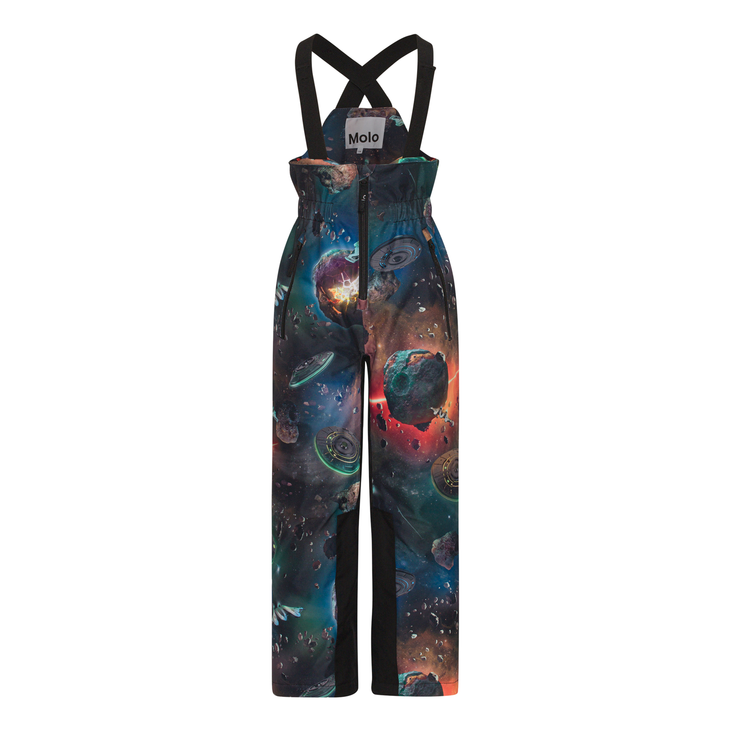 Play Pro is een skibroek in een klasse apart. Het is perfect voor zowel koude als normale dagen en voor een skivakantie. Deze skibroek heeft eigenschappen als een extreem hoge waterkolomdruk en een hoog ademend vermogen, evenals duurzaamheid. Als je dit combineert met het feit dat Jump Pro altijd verkrijgbaar is in prachtige kleuren en prints, dan is deze skibroek de perfecte keuze voor elke winter. Molo heeft bij deze skibroek op geen enkel detail compromissen gedaan en het is uiteraard gemaakt van duurzame gerecyclede materialen. Deze Play Pro heeft een print van het heelal met planeten.