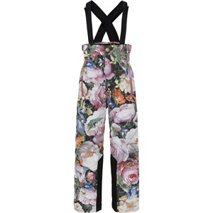 Play Pro is een waterdichte skibroek met een bloemenprint. Het heeft een hoge taille, een ritssluiting, verstelbare bretels, steekzakken, verstelbare openingen van de pijpen met sneeuwflappen en extra versteviging aan de binnenbenen en op de achterkant. De buitenstof is gemaakt van 45% gerecycled polyester, de 3M™ Thinsulate™ voering is gemaakt van 83% gerecycled polyester en de binnenstof is gemaakt van 100% gerecycled polyester. Dit product heeft een waterbestendige, PFC-vrije oppervlaktebehandeling (Bevat bijvoorbeeld geen PFOS, PFOA, etc). Waterkolomdruk: 15.000 mm. Ademend: 15.000 g/m2/24u.
