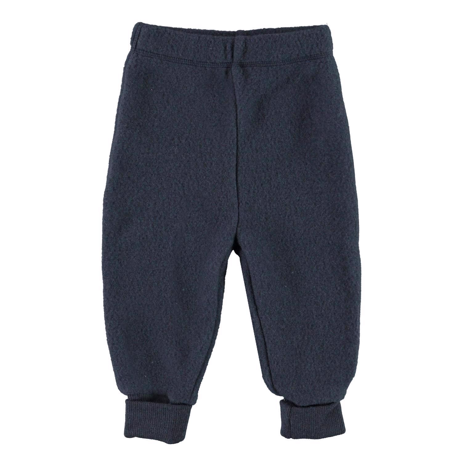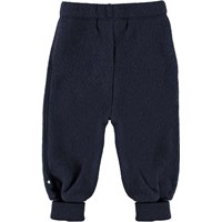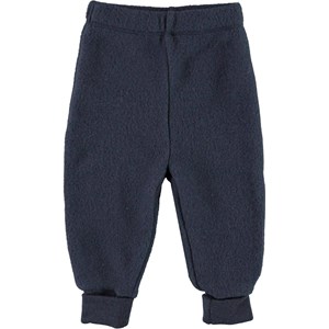 Ulmer is een blauwe wollen babybroek met omgeslagen pijpen. Het heeft een ruime pasvorm met een elastische taille.