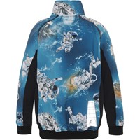 Cloudy is een sportieve en waterdichte softshell jas in de kleur blauw met een print van astronauten. Cloudy heeft een ritssluiting, steekzakken en windvangers bij de mouwopeningen. Het heeft een elastische boord aan de onderkant. Molo's softshell jassen zijn perfect voor overgangsweer omdat de buitenstof water-, winddicht en ademend is. Dit product heeft een waterbestendige, PFC-vrije oppervlaktebehandeling (Bevat bijvoorbeeld geen PFOS, PFOA, etc). Waterkolomdruk: 8.000 mm. Ademend: 5.000 g/m2/24u.