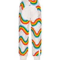 Beige doorgestikte thermobroek van 100% gerecycled polyester met een golvende regenboogprint. De broek heeft ribboord rond de pijpen en een verstelbare elastische taille. Thermische buitenkleding is ideaal voor overgangsperioden, waarin de winterkleding te warm is, maar een zomerjas te koud. Thermische buitenkleding is ademend en geïsoleerd zonder dat dit ten koste gaat van bewegingsvrijheid en comfort. Gebruik in de herfst- en wintermaanden thermische buitenkleding onder regenkleding als extra isolatielaag.