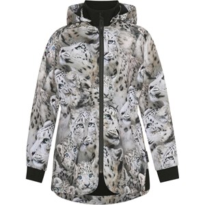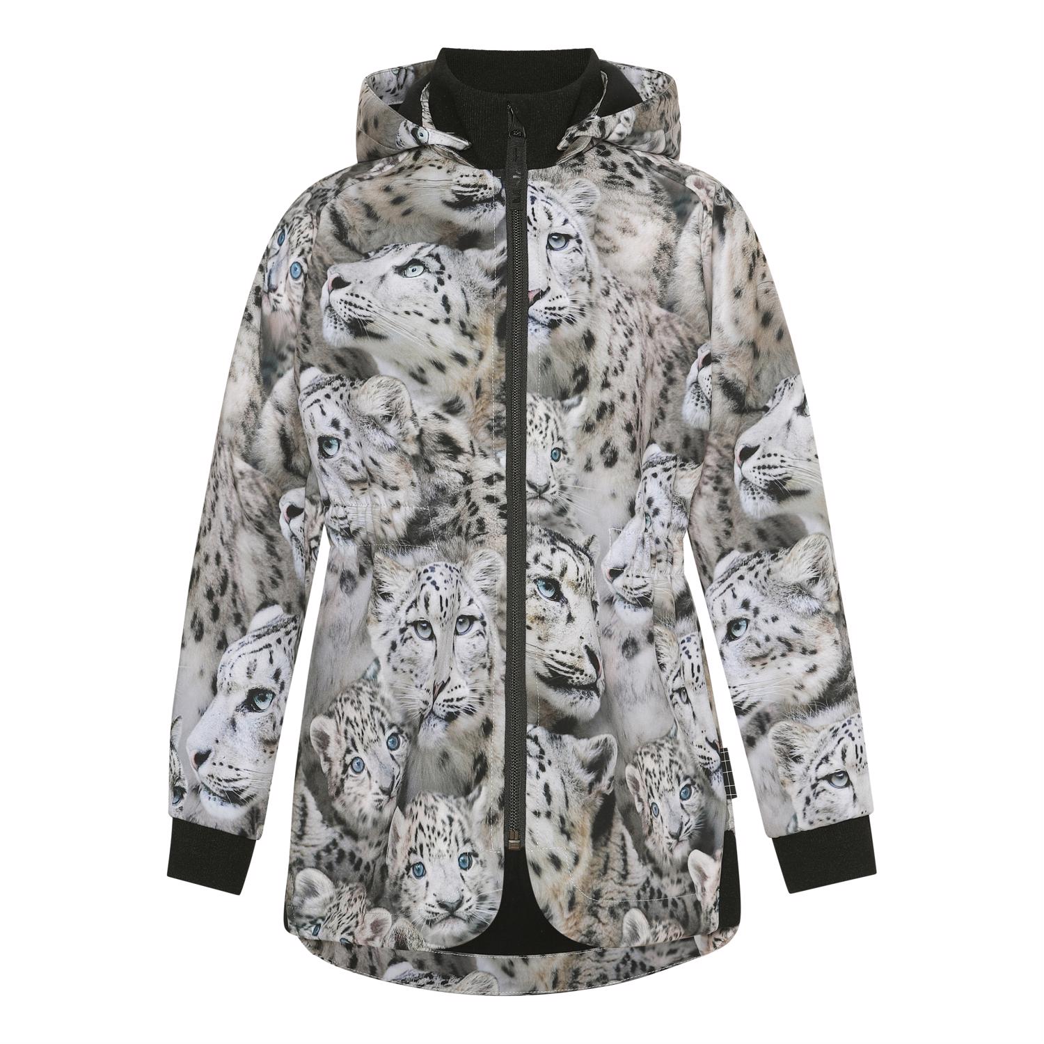 Hillary is een aansluitende softshell jas met een print van sneeuwluipaarden. De jas heeft een elastische tailleband, afneembare capuchon, een ritssluiting aan de voorkant, elastische boord rond de mouwen en Molo's iconische sterreflector op de achterkant. Molo's softshell jassen zijn de perfecte keuze voor wisselend weer omdat de buitenstof ademend en wind- en waterdicht is en de voering en de tussenvoering zijn gemaakt van gerecycled polyester. Dit product heeft een waterbestendige, PFC-vrije oppervlaktebehandeling (bevat bijvoorbeeld geen PFOS, PFOA, enz.). Waterkolomdruk: 8.000 mm. ademend: 5.000 g / m2 / 24 uur.