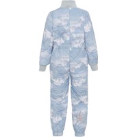 Hollyn is een praktisch en licht geïsoleerd thermopak in een luchtprint met een goudgele contrastkleur aan de binnenkant. Het is perfect voor kleine kinderen. Het heeft ribboord rond de hals en mouwen, steekzakken en verstelbaar elastiek aan de achterkant. Het pak heeft Molo's iconische sterreflector op de achterkant van een been, maar niet op maat 134/140. Maten 74/80 t/m 98/104 hebben verstevigingen op de knieën in dezelfde kleur als het pak, niet te zien op de foto.