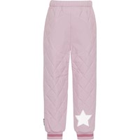 Hoti is een licht geïsoleerde roze thermobroek. De broek heeft elastiek in de taille, ribboorden aan de pijpen en Molo's iconische sterreflector aan de achterkant van één pijp voor zichtbaarheid in het donker. De broek heeft ook versteviging in een bijpassende kleur bij de knieën en het zitvlak, waardoor het duurzaam is voor allerlei soorten spel.