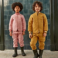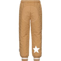 Hoti is een honingkleurige thermo broek met een prachtig steekpatroon. De broek heeft groen gestreepte ribboorden rond de pijpen.