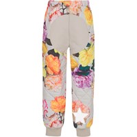 Hoti is een licht geïsoleerde grijze thermobroek met een mooie grote bloemenprint. De broek heeft elastiek in de taille, ribboorden aan de pijpen en Molo's iconische sterreflector aan de achterkant van één pijp voor zichtbaarheid in het donker. De broek heeft ook versteviging in een bijpassende kleur bij de knieën en het zitvlak, waardoor het duurzaam is voor allerlei soorten spel.