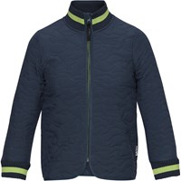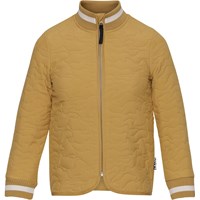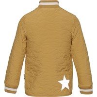Husky is een thermo jas in honingkleur met een prachtig steekpatroon. Het heeft een groene ritssluiting en groen gestreepte ribboord bij de kraag en mouwen.