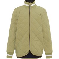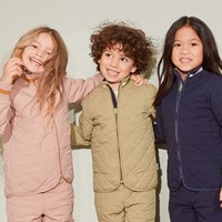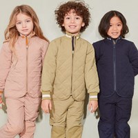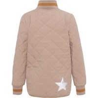Husky is een licht geïsoleerde thermojas in taupe. De jas is ontworpen met een contrasterende binnenkleur in goudgeel en heeft goudgele ribboorden rond de hals en mouwen. Het heeft Molo's iconische sterreflector op de achterkant zodat het kind in het donker veilig en beter zichtbaar is.