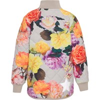 Husky is een grijze licht geïsoleerde thermische jas met een grote bloemenprint. De jas heeft een ribboord aan de hals en mouwen en heeft Molo's iconische sterreflector op de achterkant voor betere zichtbaarheid in het donker.