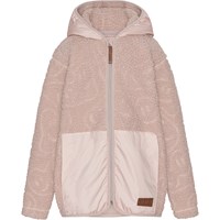 Roze fleecejasje met smiley-motief, ritssluiting aan de voorkant, capuchon en grote zakken. Het fleecejasje heeft isolerende eigenschappen en kan daarom op zichzelf gedragen worden of als een extra laag onder buitenkleding op de koudste dagen.