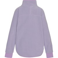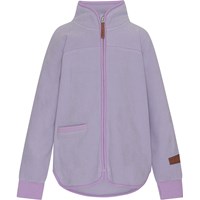 Paars fleecejasje met ritssluiting aan de voorkant, een enkele zijzak en ribboord bij de mouwuiteinden. Het fleecejasje heeft isolerende eigenschappen en kan daarom op zichzelf gedragen worden of als een extra laag onder buitenkleding op de koudste dagen.