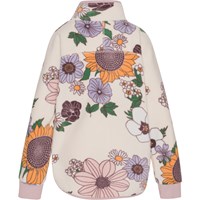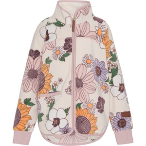 Gebloemd fleecejasje met ritssluiting aan de voorkant, een enkele zijzak en ribboord bij de mouwuiteinden. Het fleecejasje heeft isolerende eigenschappen en kan daarom op zichzelf gedragen worden of als een extra laag onder buitenkleding op de koudste dagen.
