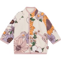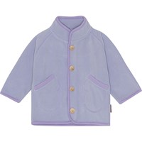 Paarse fleecejasje voor peuters met zakken in de vorm van handschoenen en een praktische knoopsluiting aan de voorkant. Het fleecejasje heeft isolerende eigenschappen en kan daarom alleen gedragen worden of als extra laag onder bovenkleding op de koudste dagen.