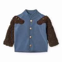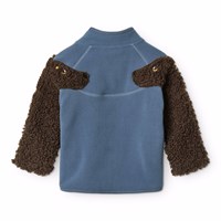 Blauwe fleecejas voor de kleintjes gemaakt van gerecycled polyester. De jas heeft een knoopsluiting aan de voorkant en schattige bruine hondenmouwen. Het is zacht, heeft een normale pasvorm en werkt goed zowel op zichzelf als als extra laag onder een jas.