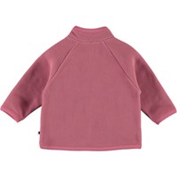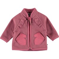 Uli is een babyjas in roze polar fleece met een hoge kraag, ruches aan de voorkant en een ritssluiting. De fleece jas heeft mooie gebreide voorzakken die op wanten lijken. De fleece jas kan alleen worden gebruikt of op zeer koude dagen als een extra laag onder een andere jas.