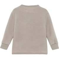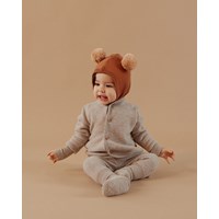 Umber is een beige Merino wollen babyjas met een knoopsluiting aan de voorkant. Het heeft een omslag bij de mouwen.